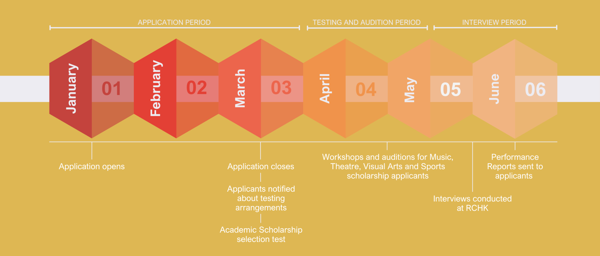 All complete applications received by the due date will be screened to ensure applicants satisfy the basic eligibility criteria. Following general testing and specialist auditions, short-listed candidates will attend a guided interview with a Scholarship Programme Panel. The final scholarship selection will be made by the Renaissance College Scholarship Programme Committee.